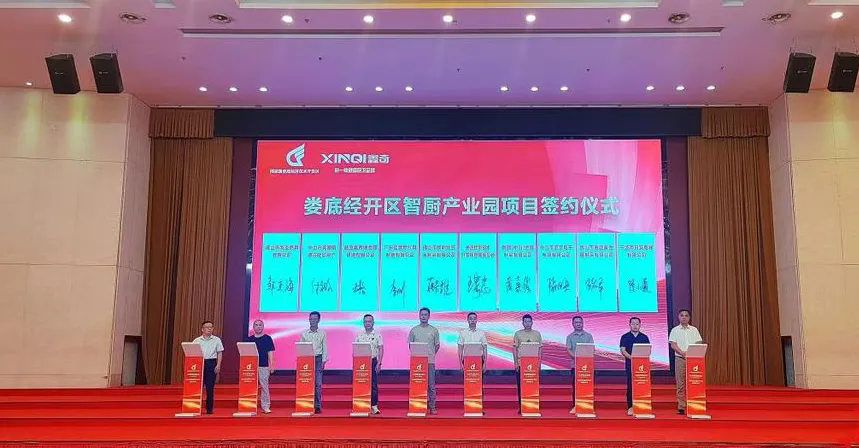 婁底市政府、婁底經濟技術開發區對本次會議高度重視并給予大力支持,在會議初始之際,舉辦了婁底經開區智廚產業園招商推介會,該產業園項目總投資35億元,分三期建設,其中首批入園企業投資5.1億元。以鑫奇電氣為“鏈主” 的智能廚電產業集群正式落戶,寧波市日安電器有限公司等9家核心配套企業同步簽約入園,每個企業將會為豐富婁底“材料谷”產業生態貢獻一份自己的力量。